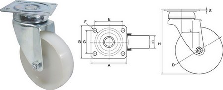 Ideal for display units, restaurant equipment, trolleys, office & medical equipment. Good resistance to abrasion, petroleum & chemical agents. Double ball race swivel action.